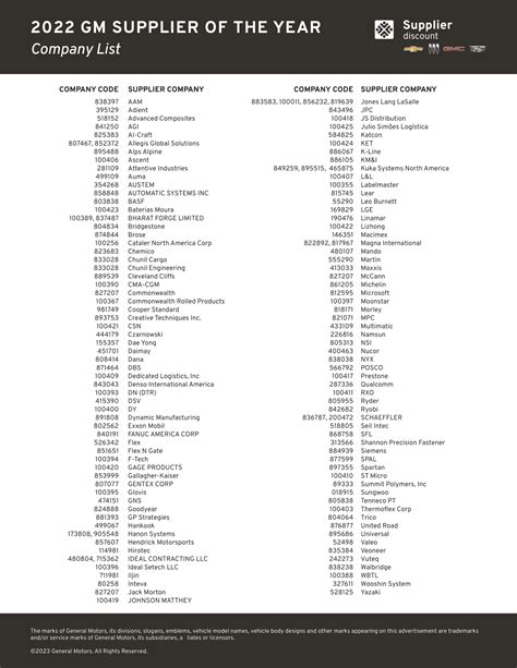 Download Gm Supplier Discount Company Code List Doc